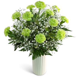 Captivating Coral features roses, Hypericum, Snapdragons, Aralia Fatsia, Curly Willow, Ruscus, and other premium foliage artfully gathered in a tall clear vase. This beautiful design is a work of art, with coral or orange flowers, and will make the perfect anniversary or birthday gift.