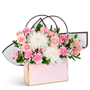Modern Merlot is a striking floral arrangement featuring rich Roses, Alstroemeria, Mums, Hydrangea, Safari Sunset, and a textured vine sphere. Its contemporary design brings a bold, artistic flair to any room. Our floral designer may make thoughtful substitutions to maintain the distinctive style and color palette.